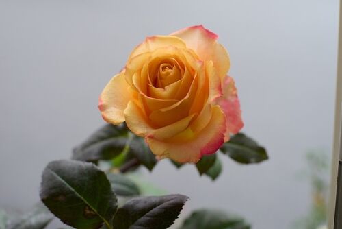 HT ジャストジョイ まだ結束してありません、大丈夫かな。 wx 雨 昨日から寒さが一段と厳しくなってきました。 今日は雪混じりの雨が降り、夕方からは雪に変わりこの時間になると一面真っ白です。 鉢植えのバラはまだ結束していないので枝が折れないか心配で…