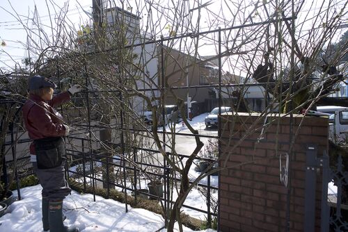 wx 時雨後雨 5度 晴れ間が続くくかと思うと雨が降る不安定な天気でした。 Saka は午前中から必要のない枝を切り落とし、「引っ掛け君」を使って ER グラハムトーマスの誘引を始めましたが、雨が降って来るので思うほど作業は進みませんでした。 整枝を済ませ…