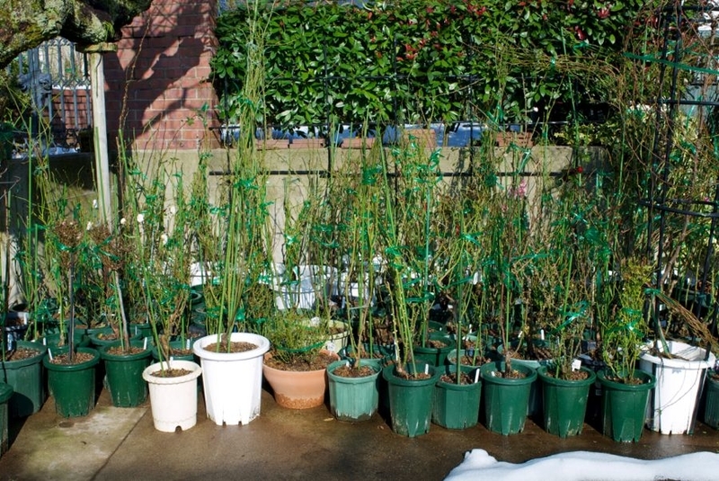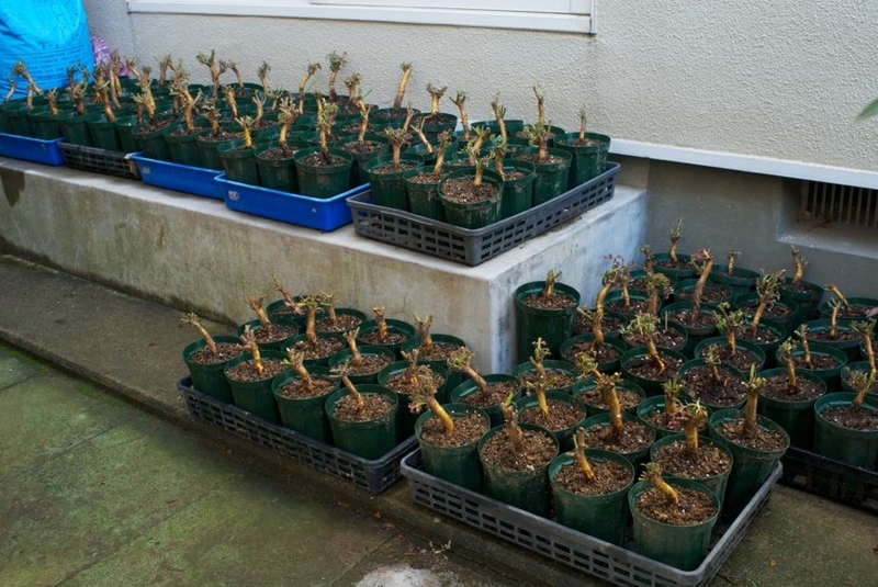 2011-12-31 暖かな大晦日 台木を鉢植えにしました 庭のようす wx 晴れ 昨日とは打って変って暖かな日になりました。 暮れの忙しい日々、仕事の合間に台木を鉢に植えました、ご覧の通り整列しています。 1年 『ばらとながぐつ』をご覧頂きありがとうございます、どうぞ良いお年をお迎え下さい。