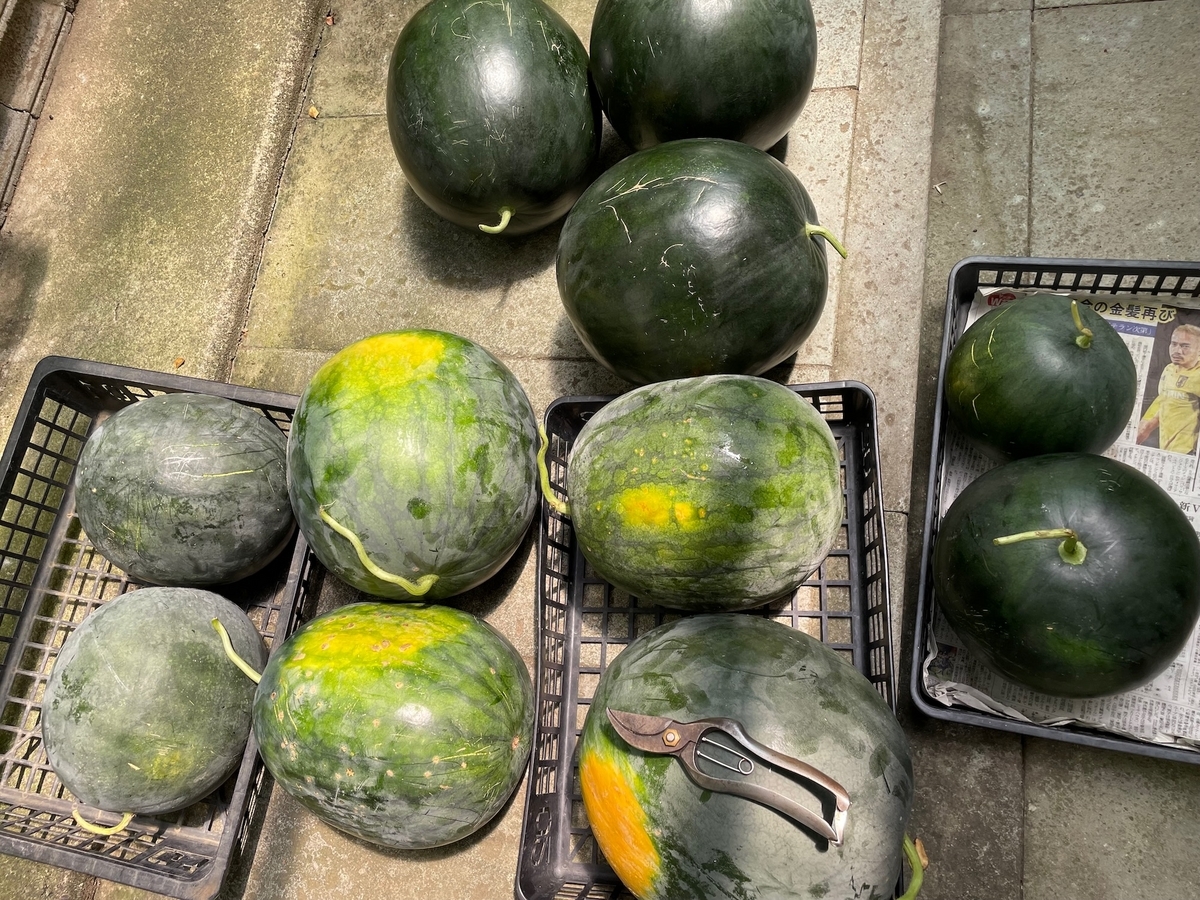 スイカは全て収穫しました。小さな物は漬物にします。